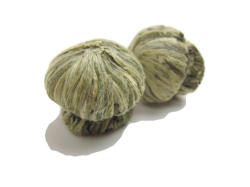 中国茶の本場、福建省で作られるこの工芸茶は、緑銀針でキンモクセイと百合花を包み込んだ、上品で美しい工芸茶です。