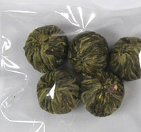 中国茶の本場、福建省で作られるこの工芸茶は、緑銀針でキンモクセイと百合花を包み込んだ、上品で美しい工芸茶です。